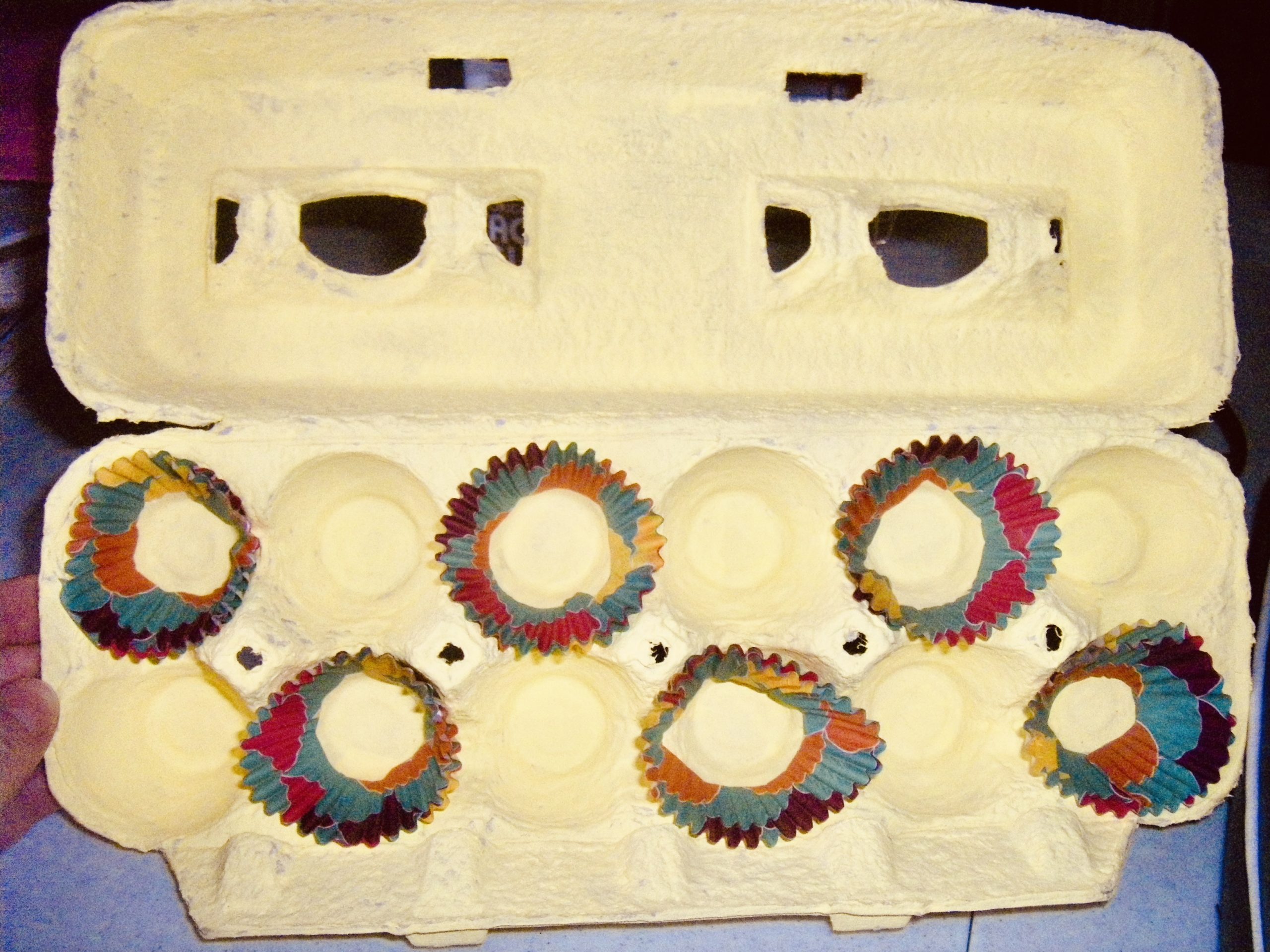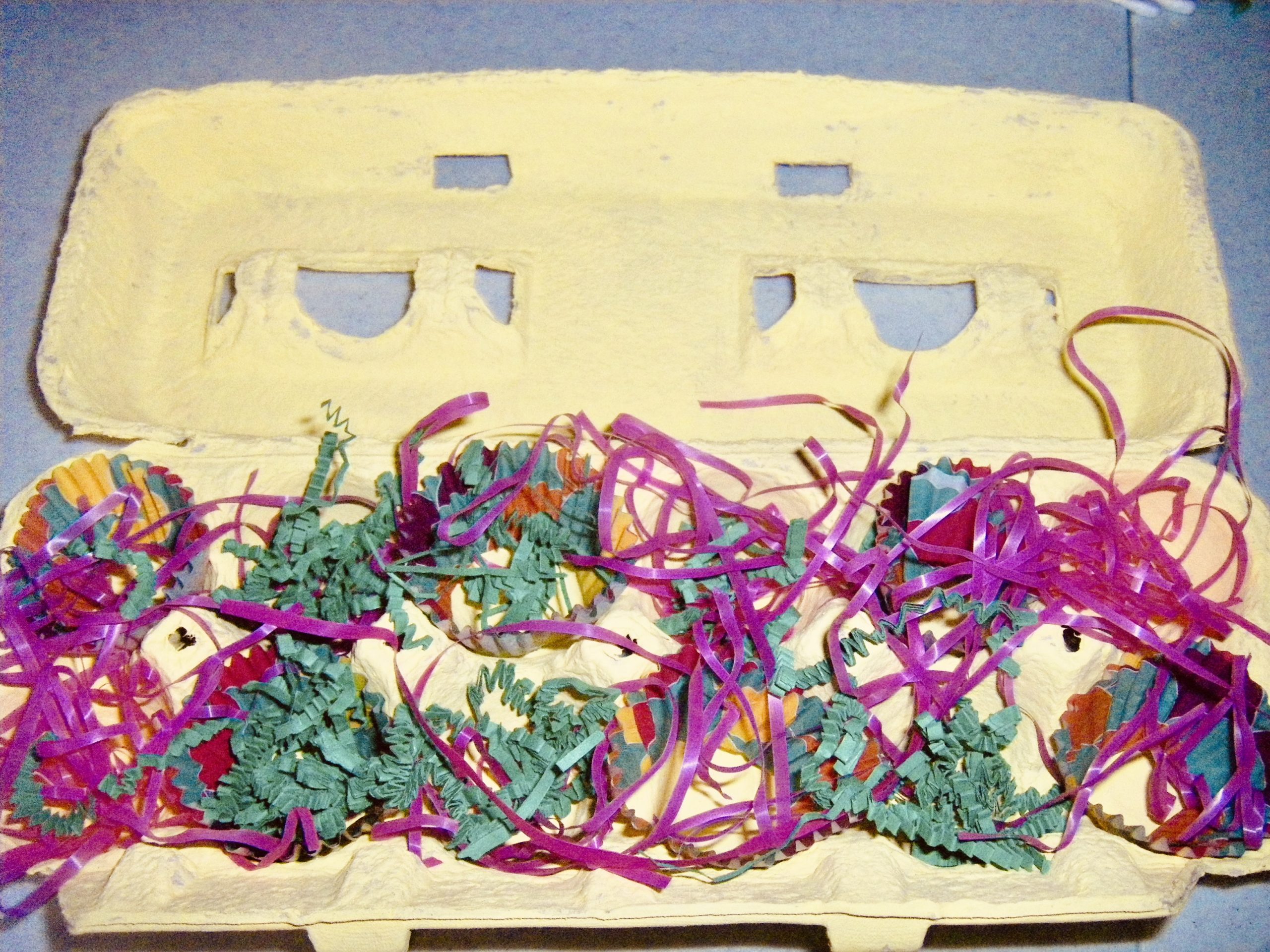 Then take your glued cupcake holders, Easter grass, candy, and egg carton and put together your DIY Easter gift.