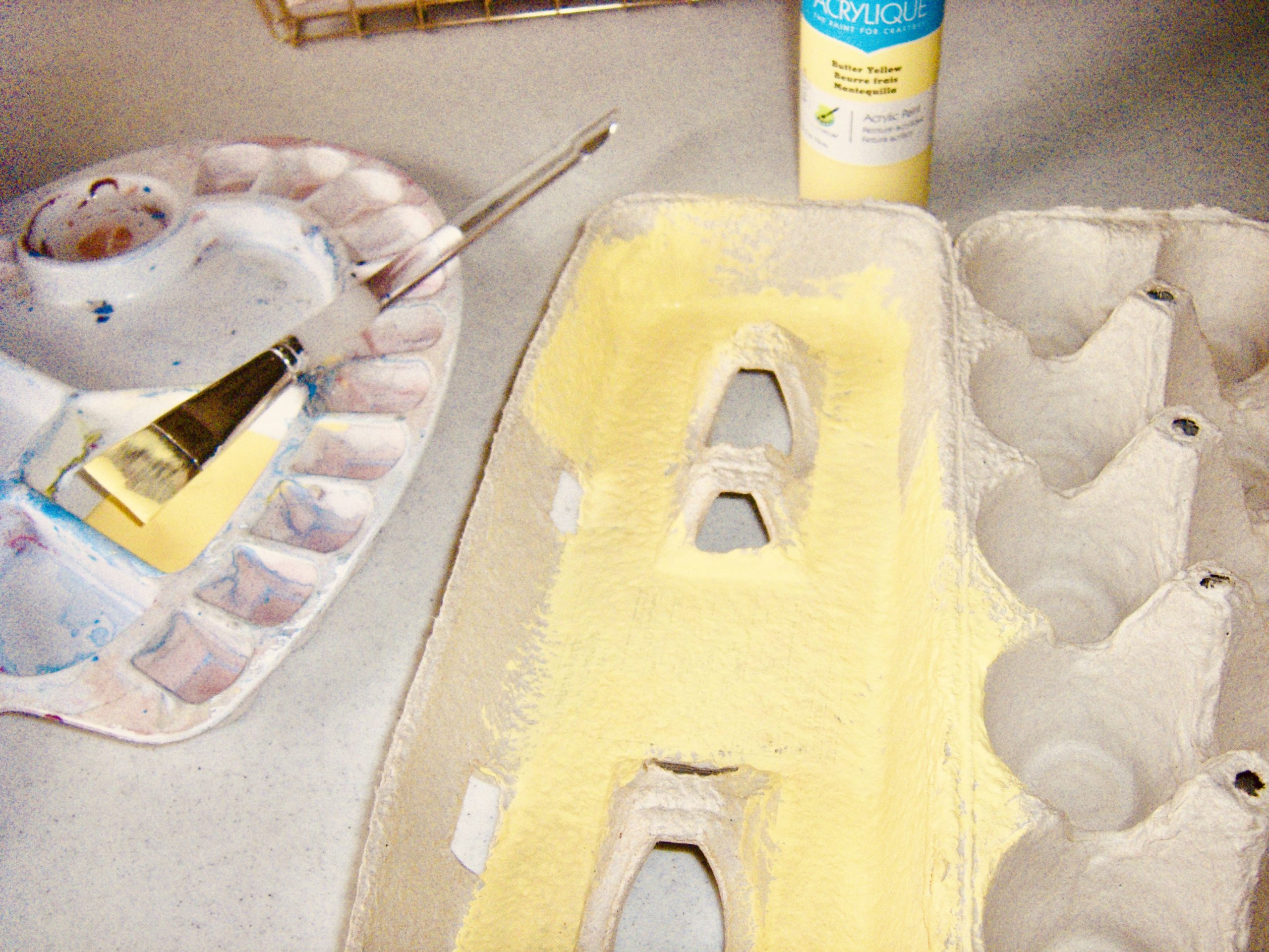 The first step to creating this fun Easter DIY gift idea is going to be to paint your empty egg carton.