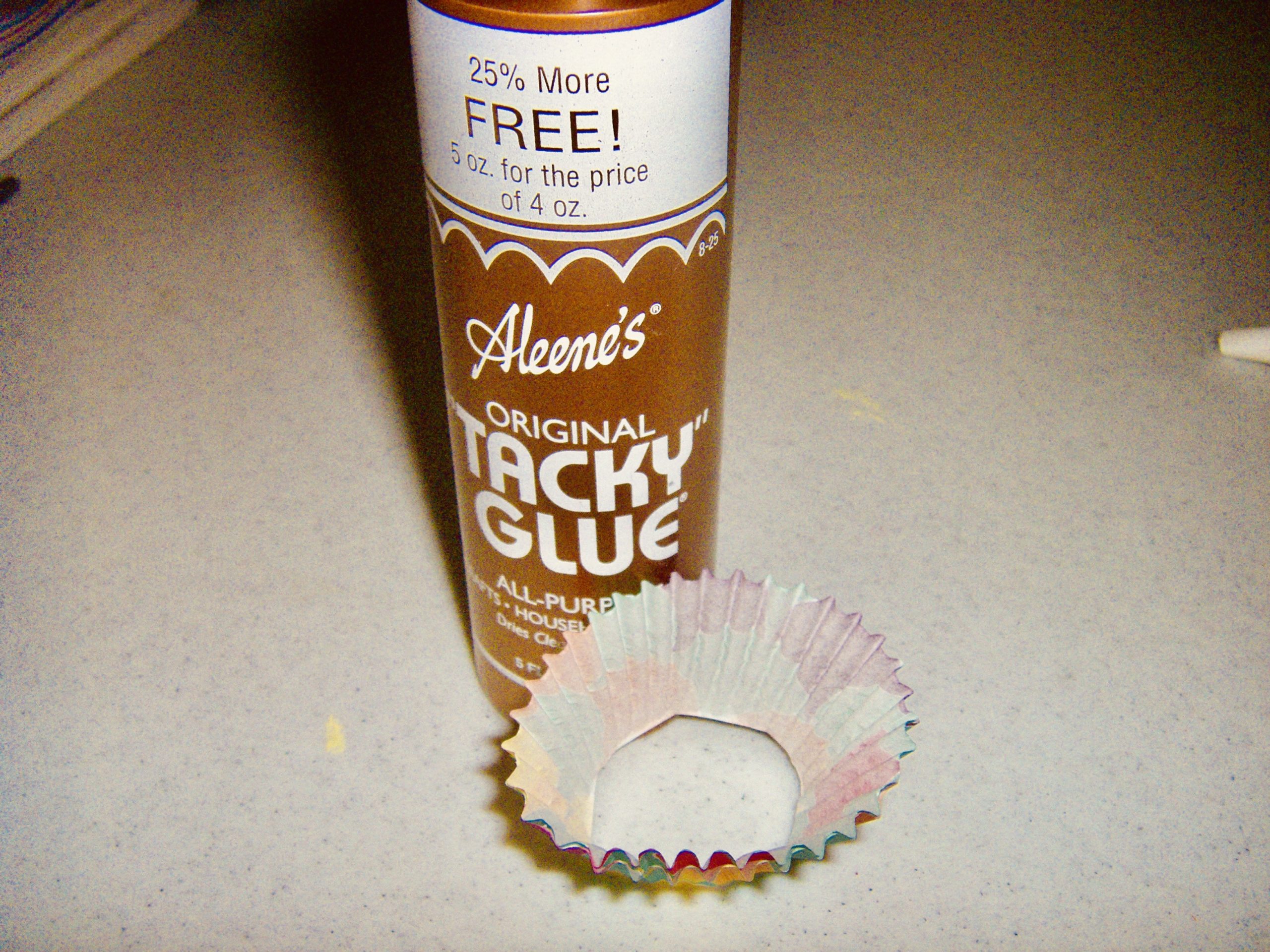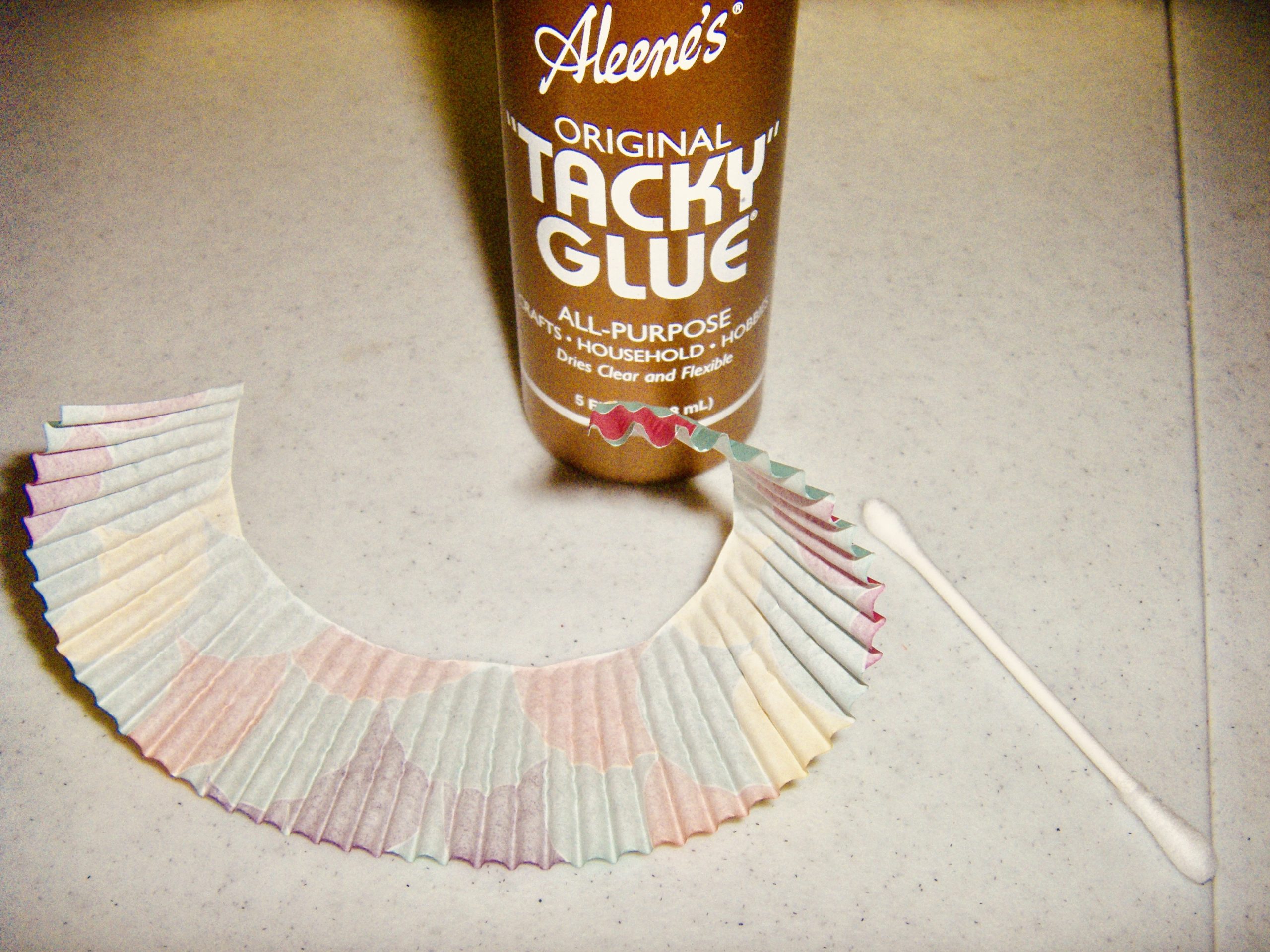In conclusion, you will glue the two sides of the cupcake liner together at the edges.