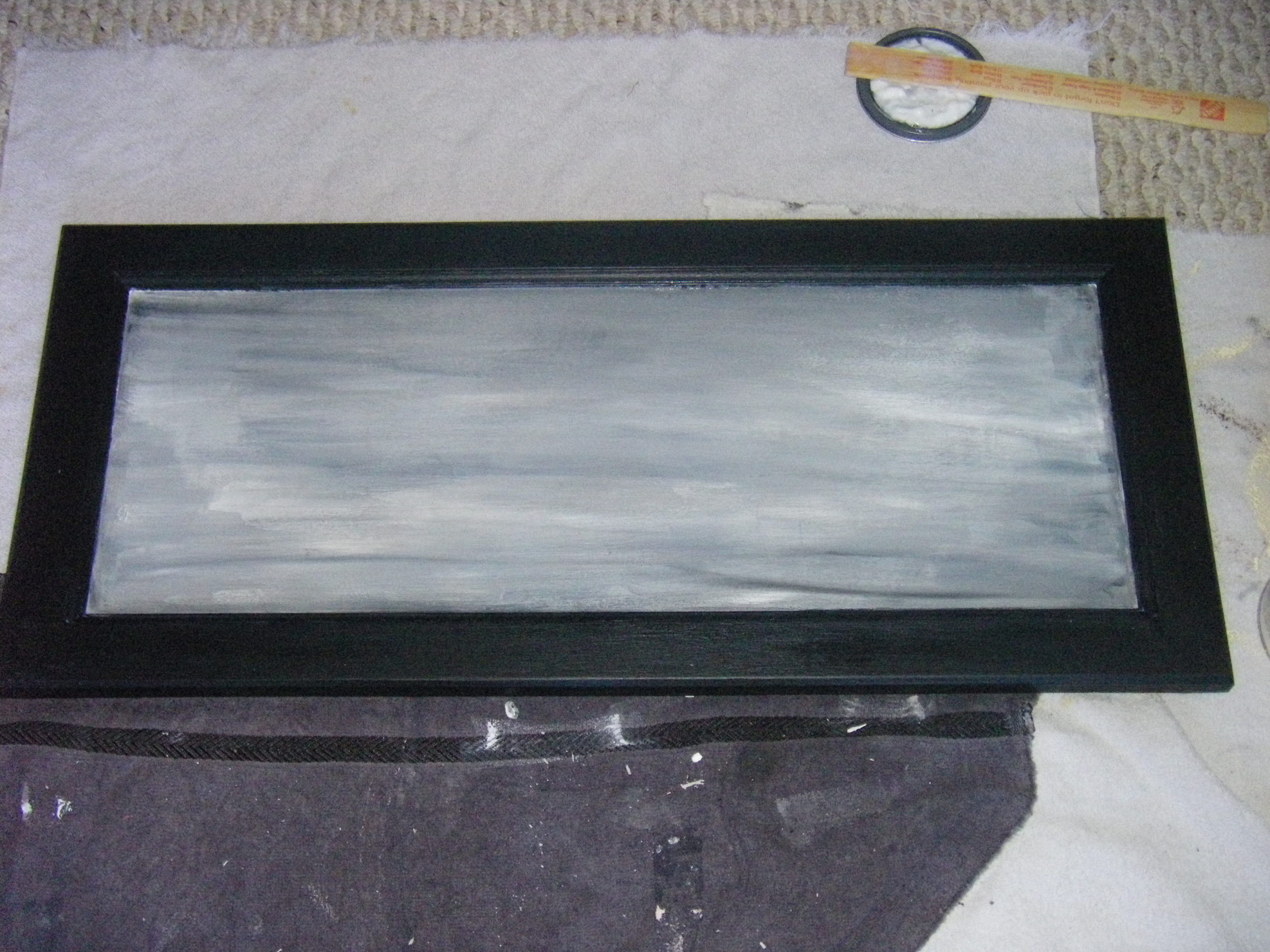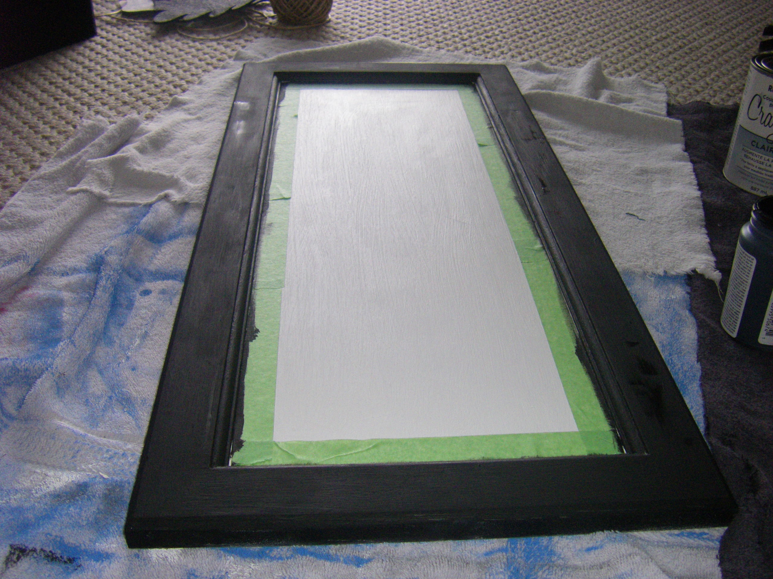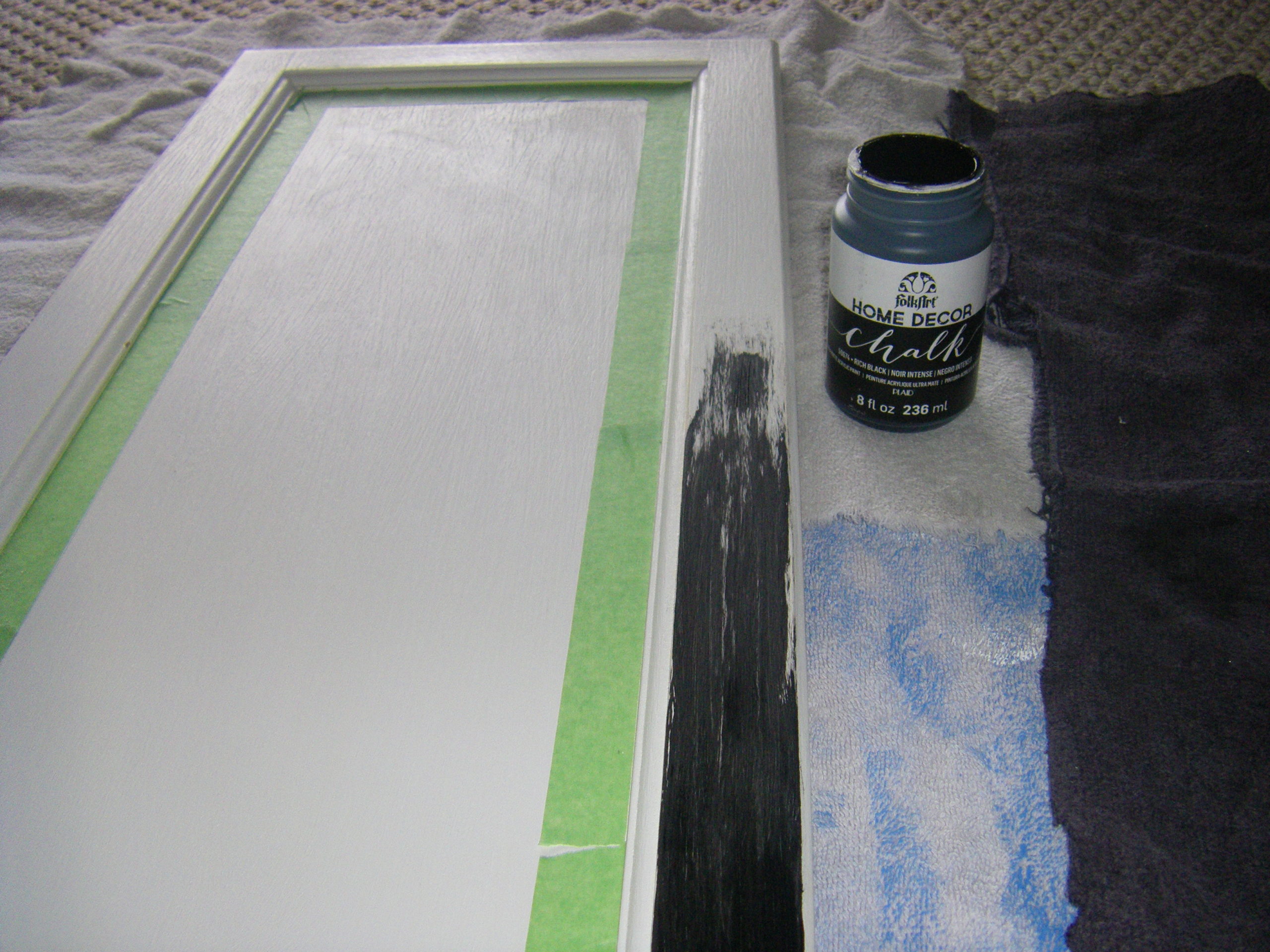 To protect the painted edge of the door put painter’s tape around the outer edge of the central area.
